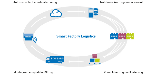 Bossard's Lieferantenmanagement wurde entwickelt, um Prozesskosten und administrative Tätigkeiten zu reduzieren. Ihre existierenden B- und C-Teile Lieferanten können Sie in Smart Factory Logistics Lösungen integrieren.