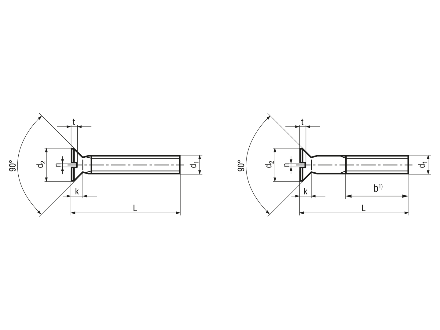 - Senkkopf 90°