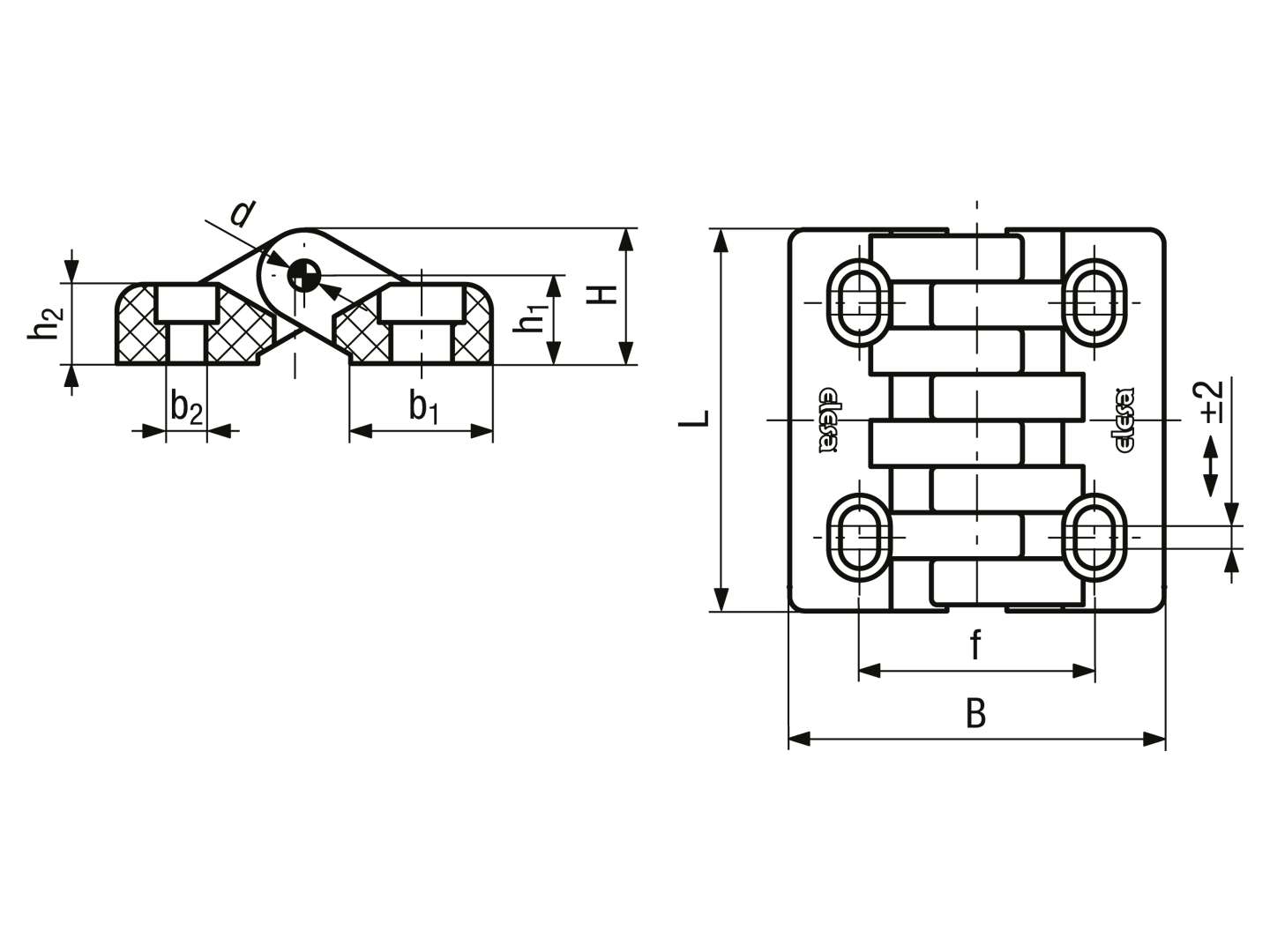 ELESA® CFA-SL-V - Hinges with pass-through slotted holes for vertical adjustments