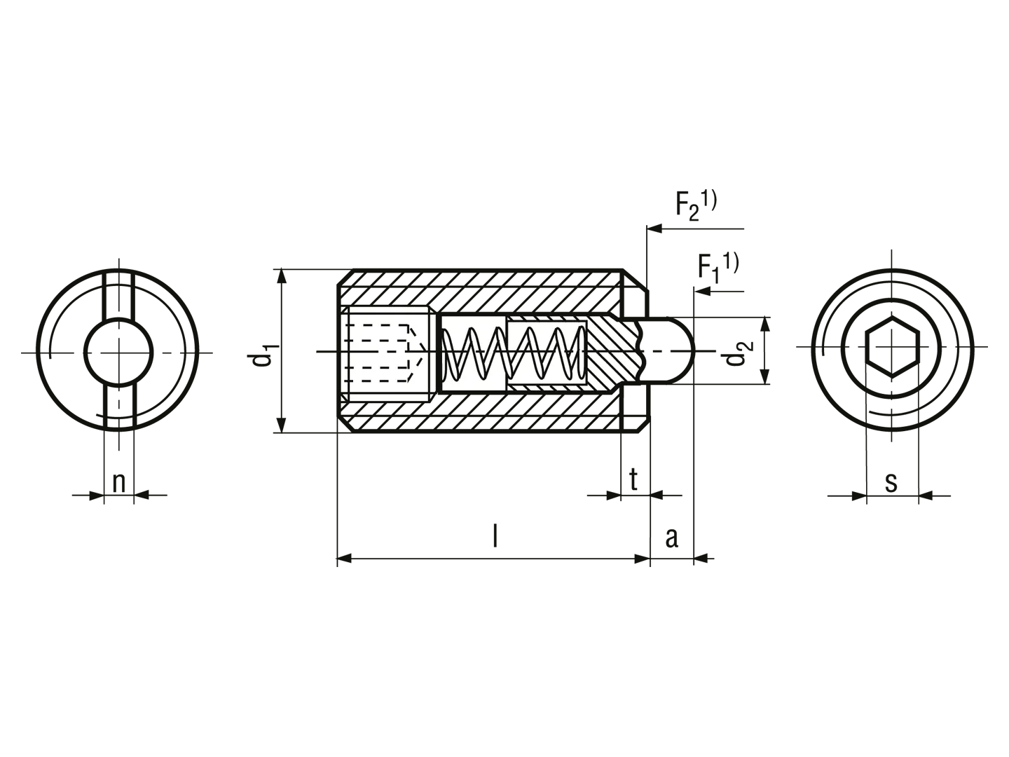 HALDER EH 22060. - Federnde Druckstücke mit Bolzen und Gewindestift mit Innensechskant verklebt Standard-Federkraft