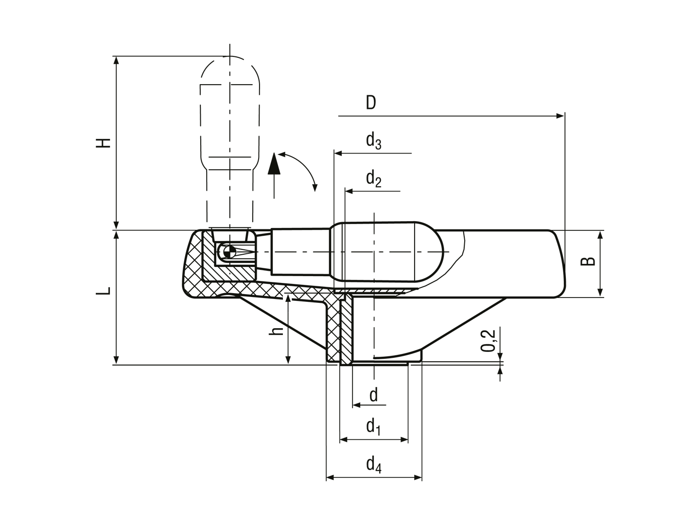 BN 14077ELESA® VRTP+IR - Zweispeichen-Handräder mit Umlegegriff, Buchse Stahl brüniert