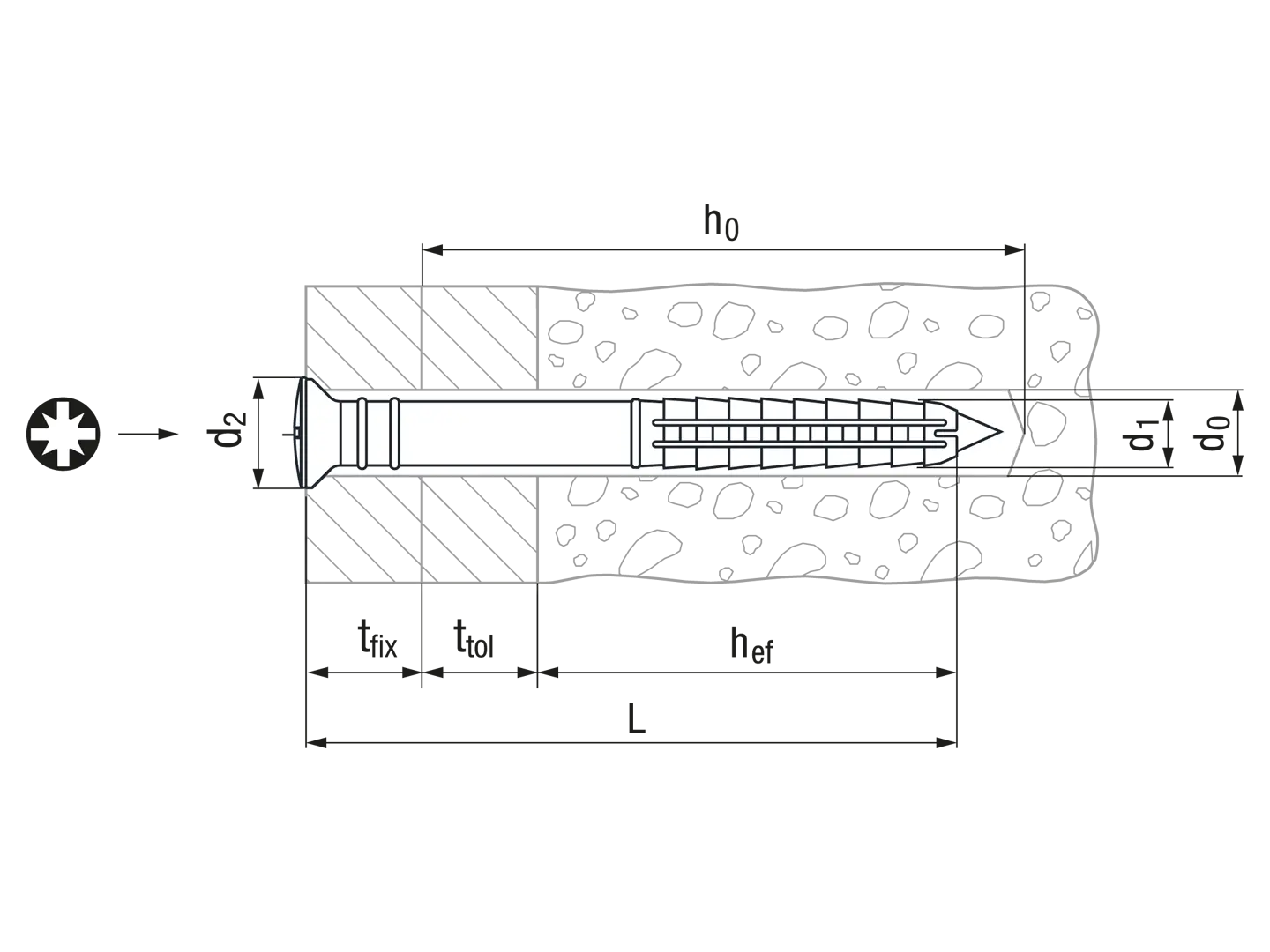 Tecfi YZ01 - Nageldübel mit Senkkopfkragen und Senkkopf-Nagelschraube