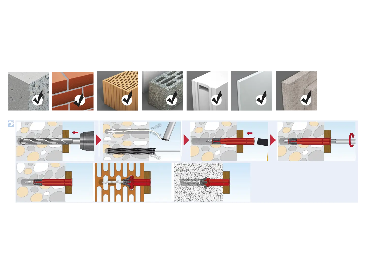 DescriptionProduct featuresPlugs: polyethylene / steel zinc plated Product information, approval: www.tox.en/Information-factsAssemblyVariants