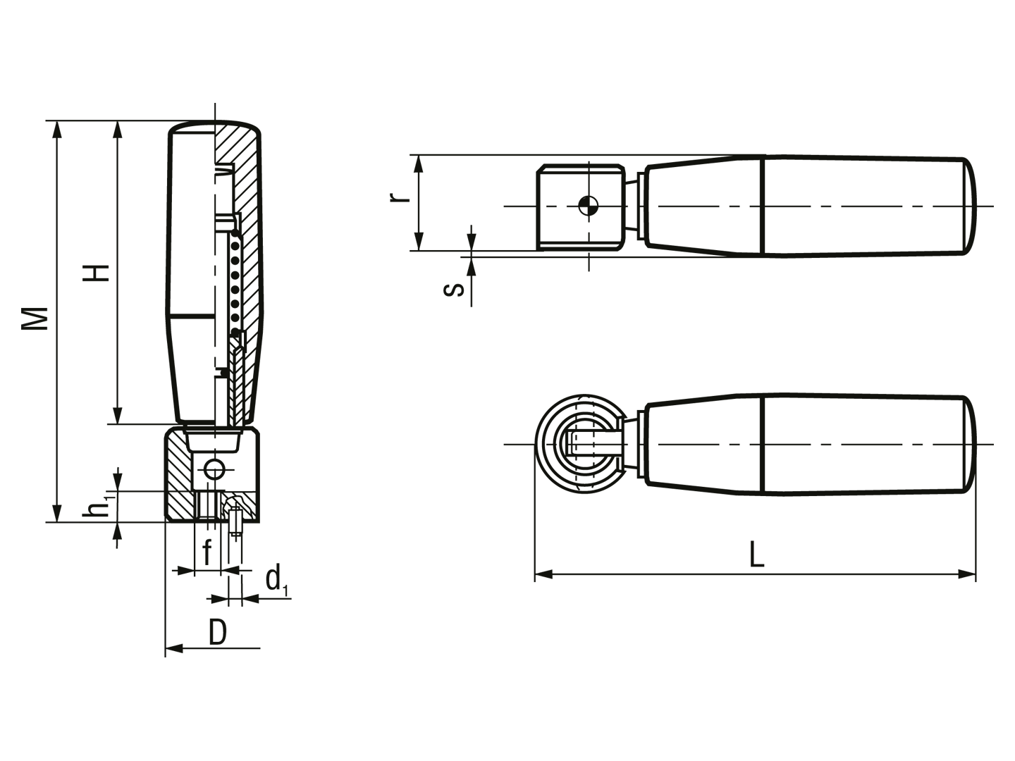ELESA® IR.612 - Fold-away handles with double guide stud, steel black-oxide