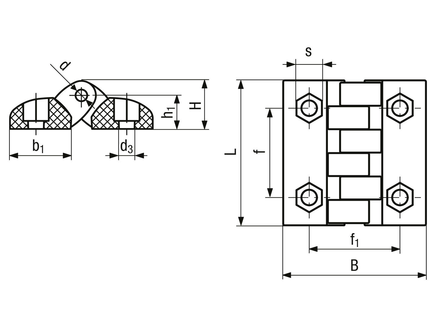 ELESA® CFTX-EH - Charnières avec trous traversants et sièges pour vis à tête cylindrique