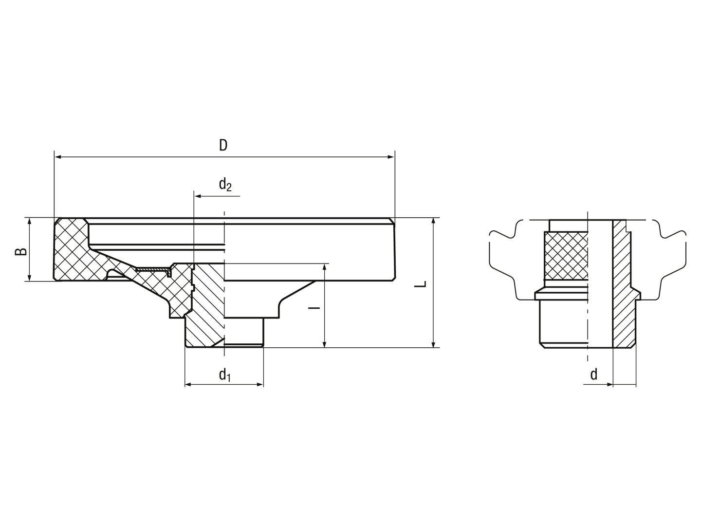 ELESA® VDN.FP-A - Volants pleins moyeu en acier bruni, anneau aluminium avec trou traversant H7
