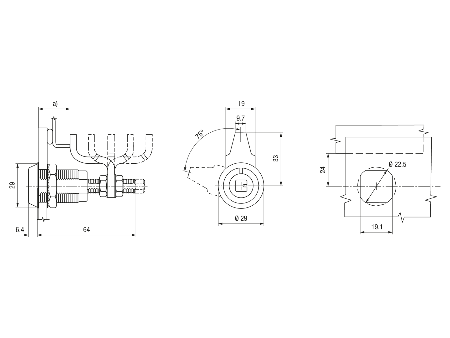 southco® E3 - Chiusure a compressione, serie grande Impugnatura a T, quadrata da 7 mm, montaggio a 3 fori, destrorsa, serraggio regolabile