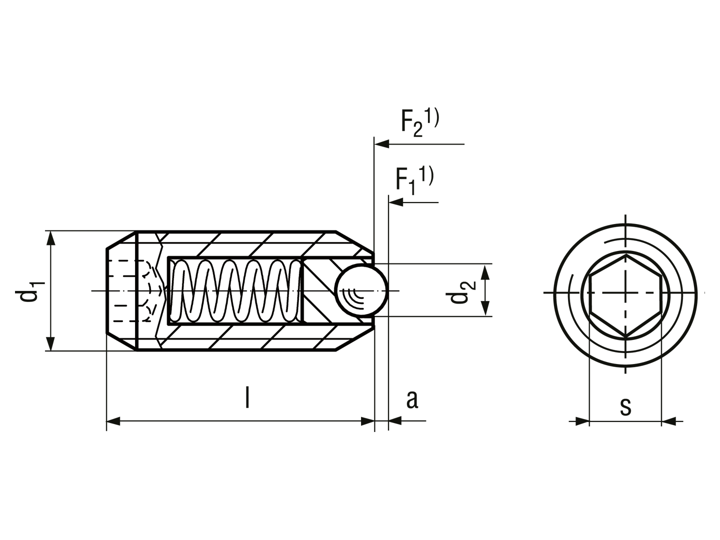 Posizionatori a molla con sfera libera ed esagono incassato spinta maggiorata