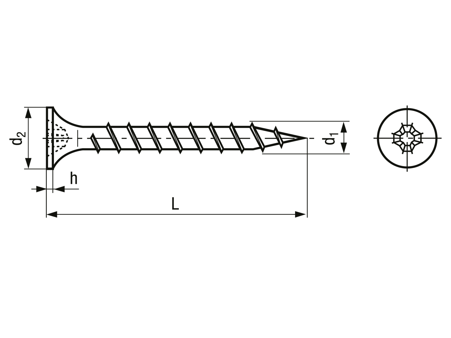 Šrouby do sádrokartonu se zápustnou hlavou s křížovou drážkou Phillips