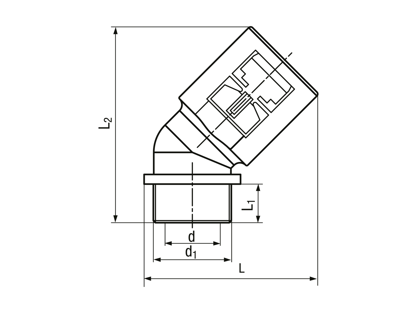 REIKU® PM AOB, Pg - Úhlová spojka 45° s vnějším závitem