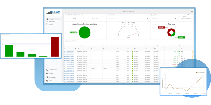 ELAM Solutions ist eine All-in-One-Lösung, die den Montageprozess vereinfacht und gleichzeitig die Produktivität erhöht. Es bietet eine Vielzahl von Funktionen, darunter digitale Arbeitsanweisungen, Werkerführung, Rückverfolgbarkeit und Echtzeit-Produktionsverfolgung, die alle darauf ausgerichtet sind, die Qualität Ihrer Produkte zu verbessern. Darüber hinaus können ELAM-Lösungen eine Verbindung zu einer Vielzahl von IoT-Geräten herstellen, die in den Flow eingebettet werden können. Mit nahtloser Konnektivität und erweiterten Datenverwaltungsfunktionen stellt ELAM Solutions sicher, dass Ihr gesamter Betrieb zuverlässiger und agiler läuft.