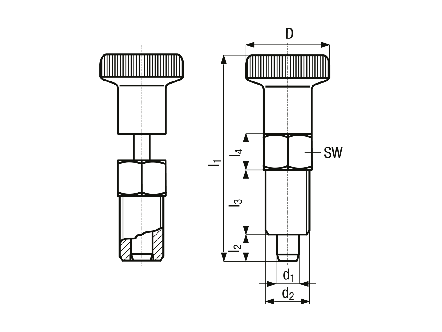 BeskrivelseProduktbeskrivelseLåsestift: rustfrit stål, kemisk forniklet Knop: sort polyamid, ikke demonterbarVarianterCAD