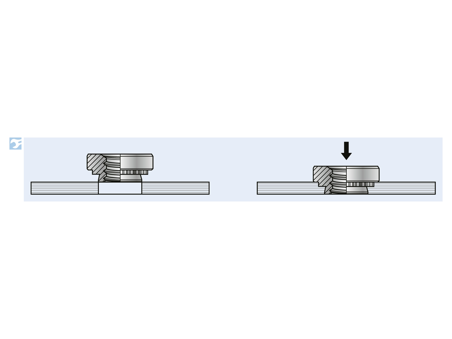 Indpresningsbefæstelse til metalliske materialer