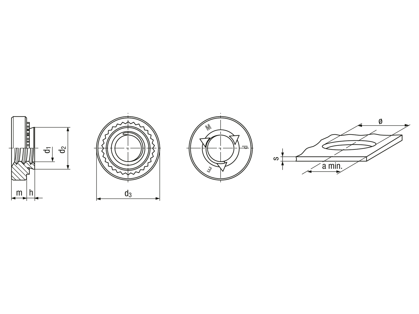 Pres-sikringsmøtrikker til metalliske materialer