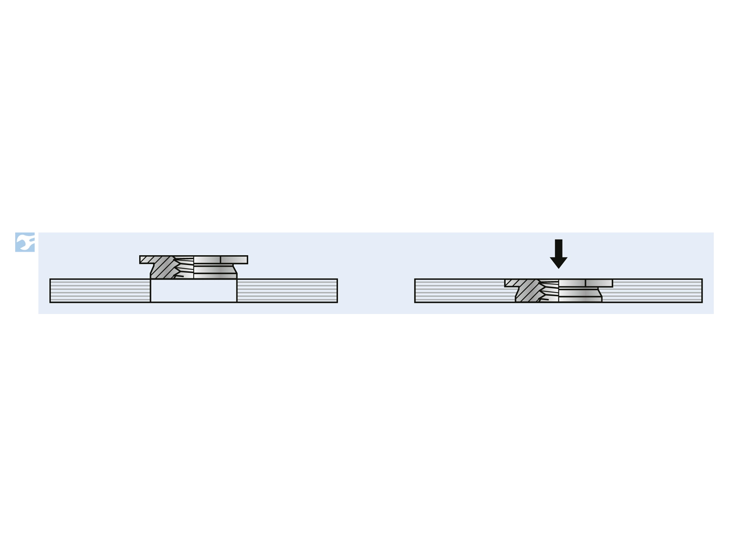 Især til tynde aluminiumsplader. Efter montering rager hverken top eller bund ud.