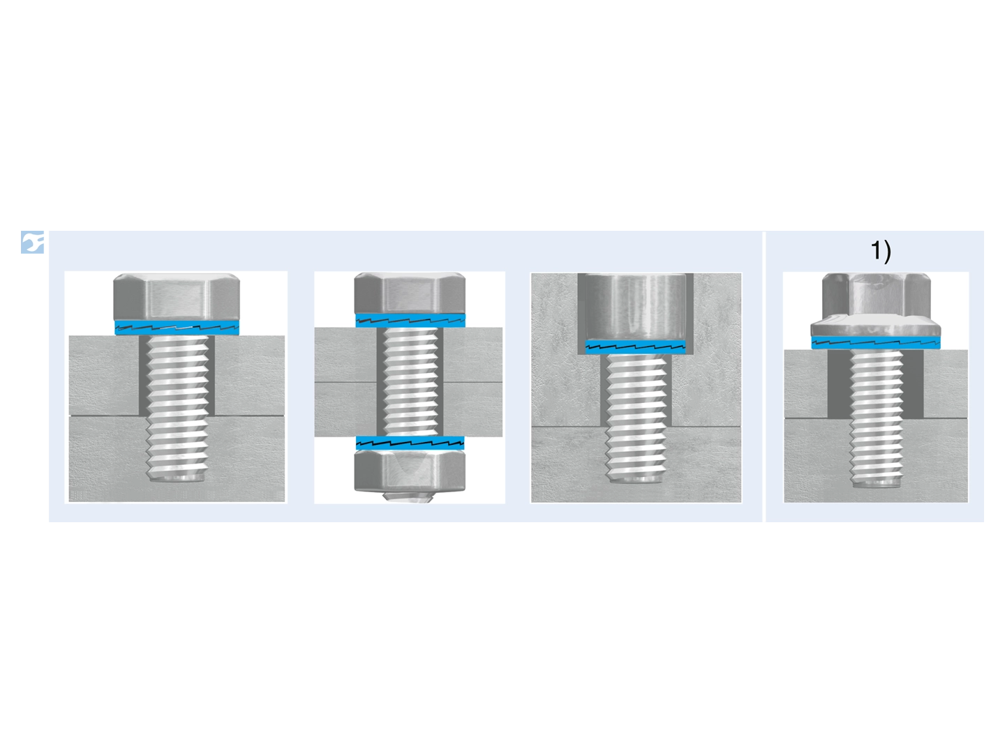 1) NORD-LOCK® på store/lange huller eller bløde materialer. NORD-LOCK® skiver med stor diameter i kombination med flangemøtrikker/bolte anbefales til brug på store/lange huller eller bløde materialer.