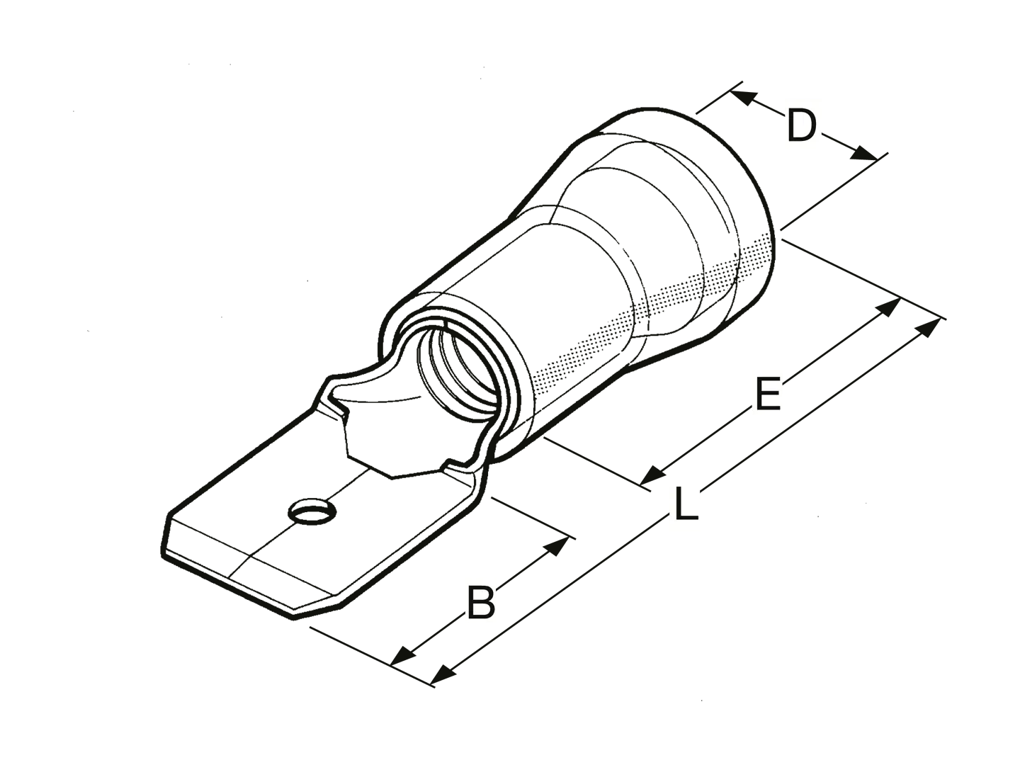 BeskrivelseProduktbeskrivelseTil spadestik 6,3 x 0,8 mm Brændbarhed: selvslukkende iht. UL94V-0 Temperaturbestandighed: -20 °C ... +75 °C Mere informationUL-fil n° E143070VarianterCAD