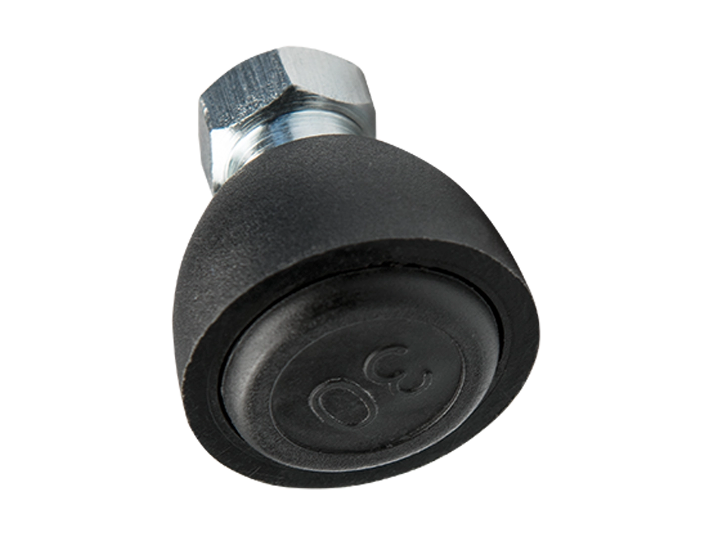 Piedini di regolazione per macchine con foro filettato, articolati, con inserto antiscivolo in gomma