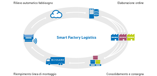 La Supplier Consolidation Solution di Bossard (gestione degli articoli di terze parti) è studiata per ridurre i costi di processo attraverso una collaborazione più efficiente, assicurando semplicità amministrativa, maggior controllo e visibilità. Integrando i vostri fornitori esistenti di articoli di classe B e C, la soluzione offerta dalla Smart Factory Logistics garantisce meno transazioni e una fornitura continuativa.