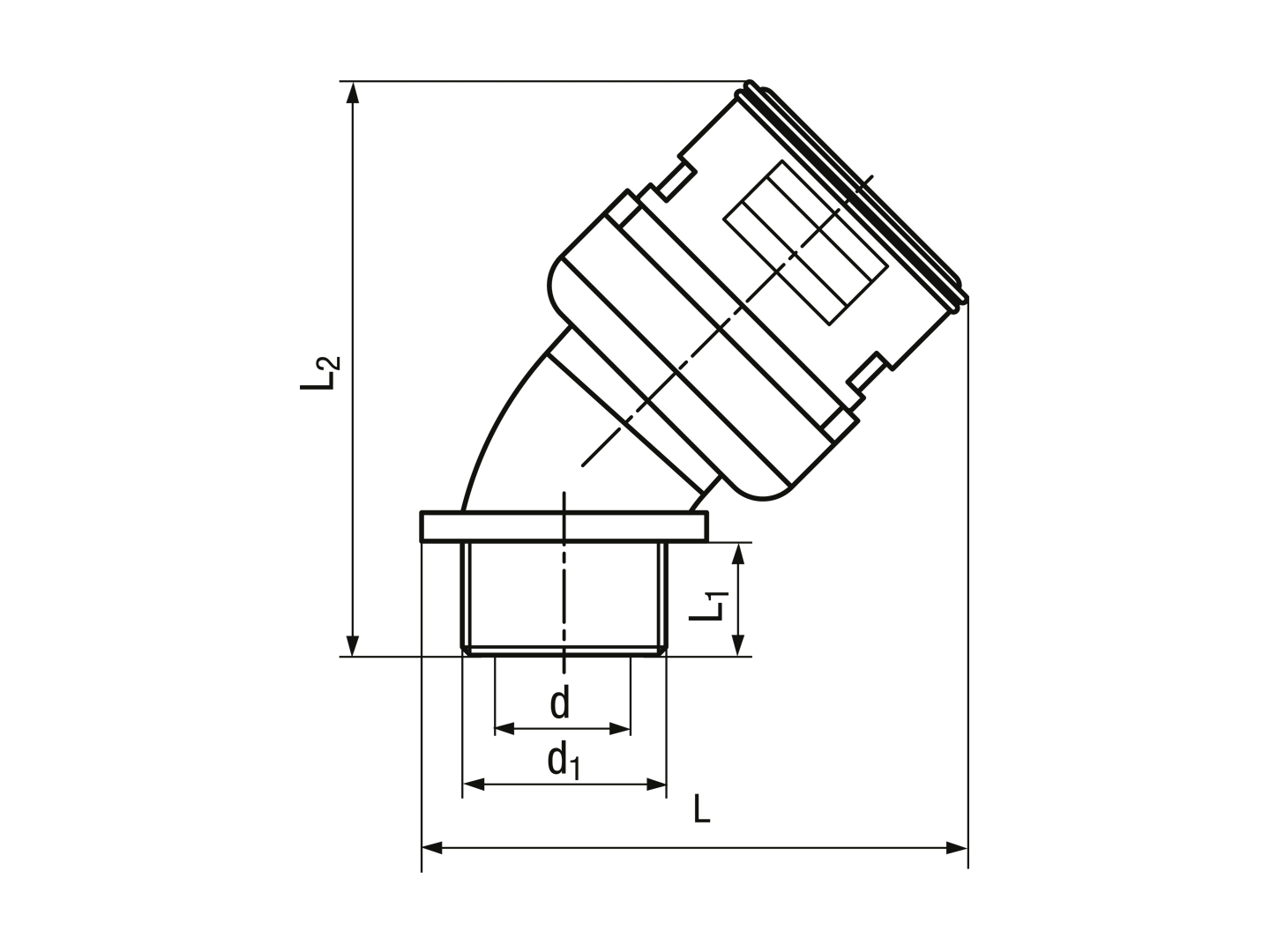 REIKU® VP ARB, metr. - Arched elbows 45° with integrated seal and male thread