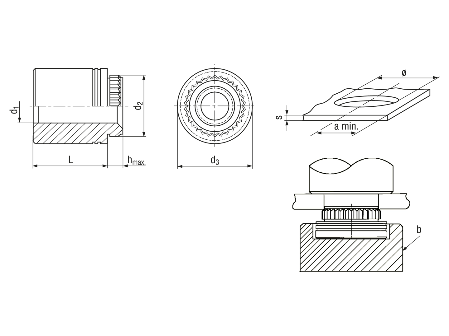PEM® KFSE - Broaching standoffs with through-hole, for PC boards and other plastics