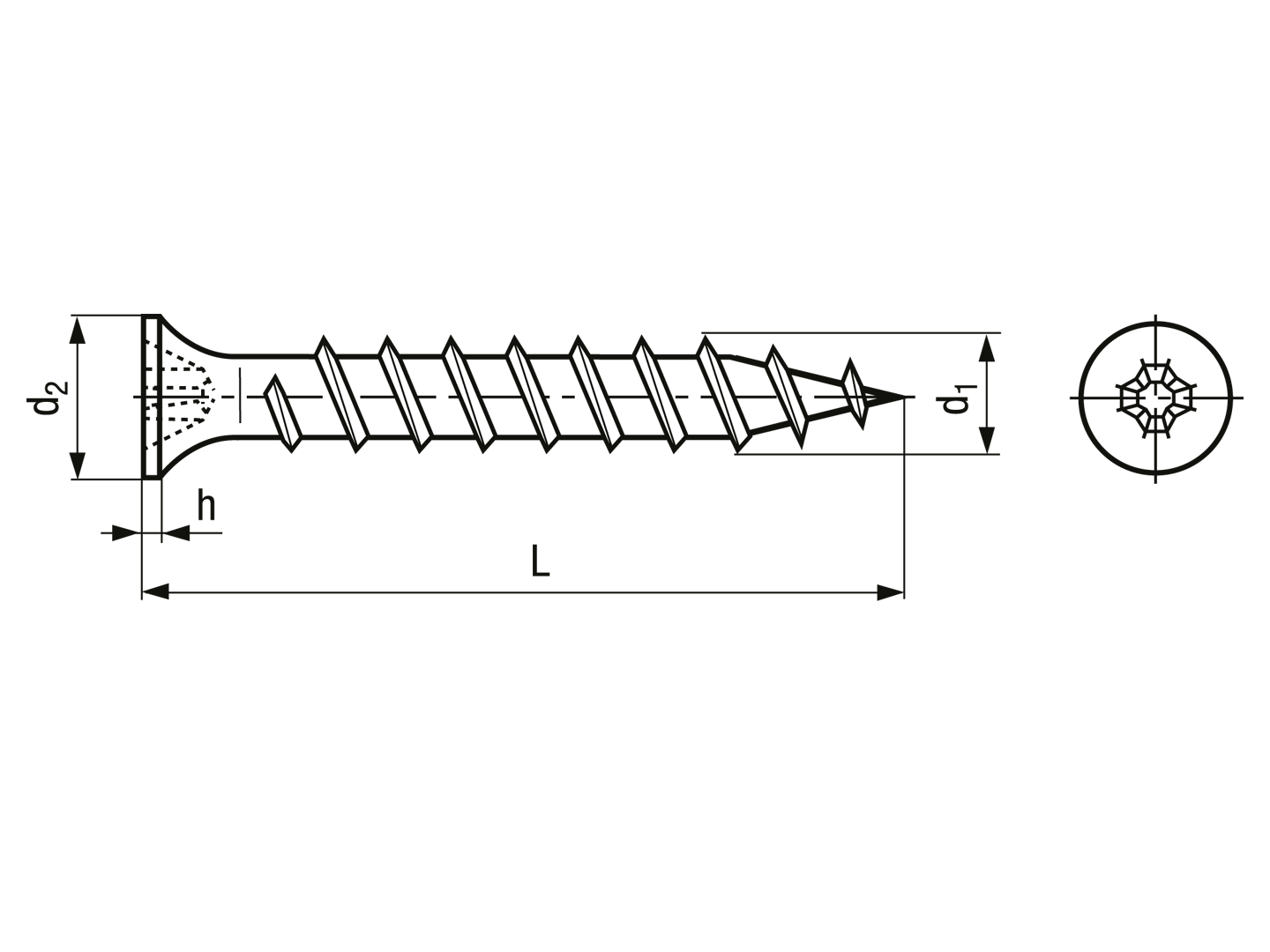 Phillips flat head countersunk drywall screws form H, with coarse thread